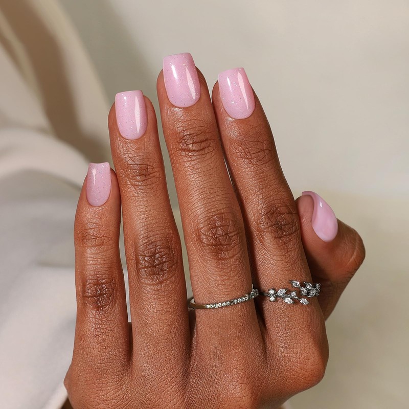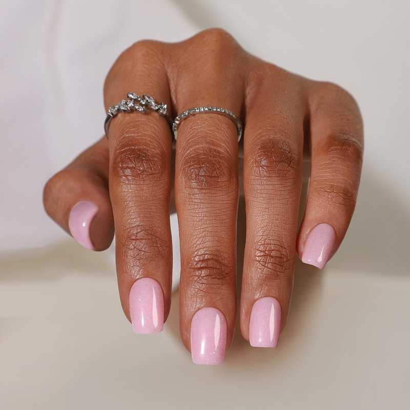 Press on Nails Square - SHANGMENG Soft Gel Press on Nails Short, Light Weight & Natural Fit Glue on Nails for Wedding Birthday Gift, Stick On Nails in 16 Sizes - 32 Fake Nails Kit, Shimmering Pink