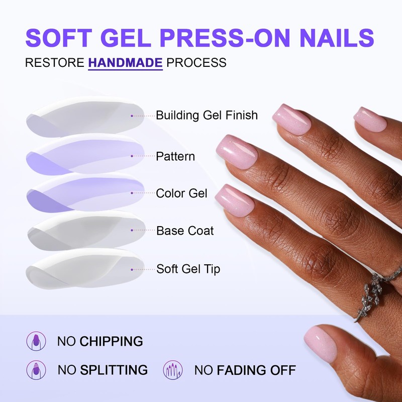 - How Natural They Are: We chose to make these acrylic press on nails from soft gel, which is soft and flexible. They put zero pressure on the nail bed, fit perfectly like real nails, and have gentle curves and seamless cuticle lines. Add a beautiful touch to your girlfriend, wife, or women.
