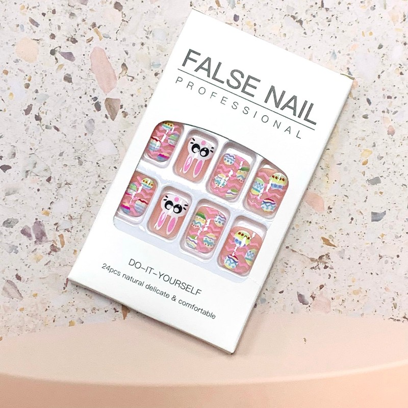 - Eye-catching Design: Beautiful short square pink false nails with cute rabbits and Easter eggs patterns that will make you stand out in Easter Sunday.
