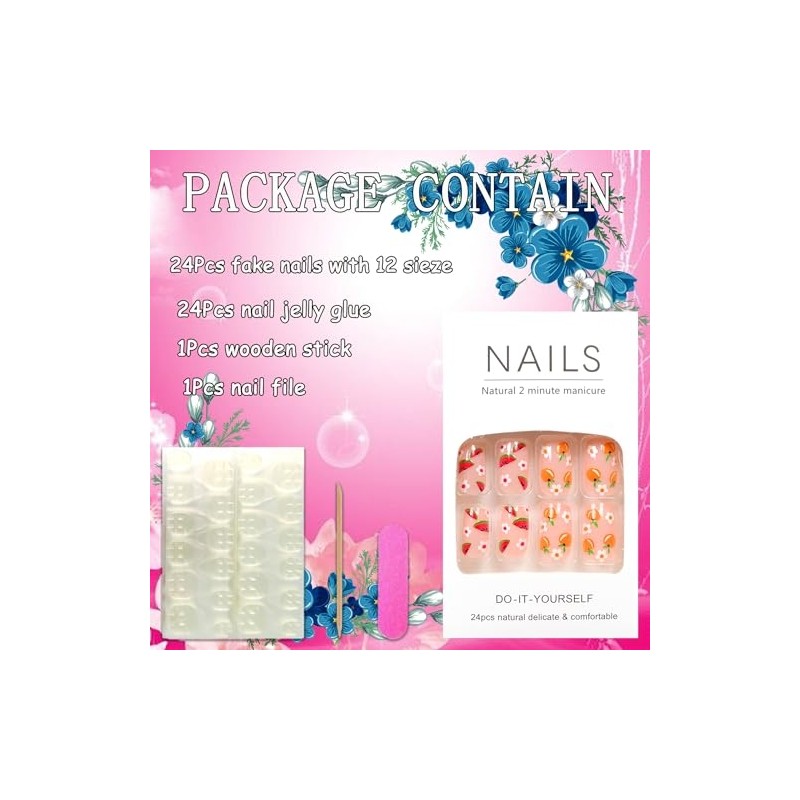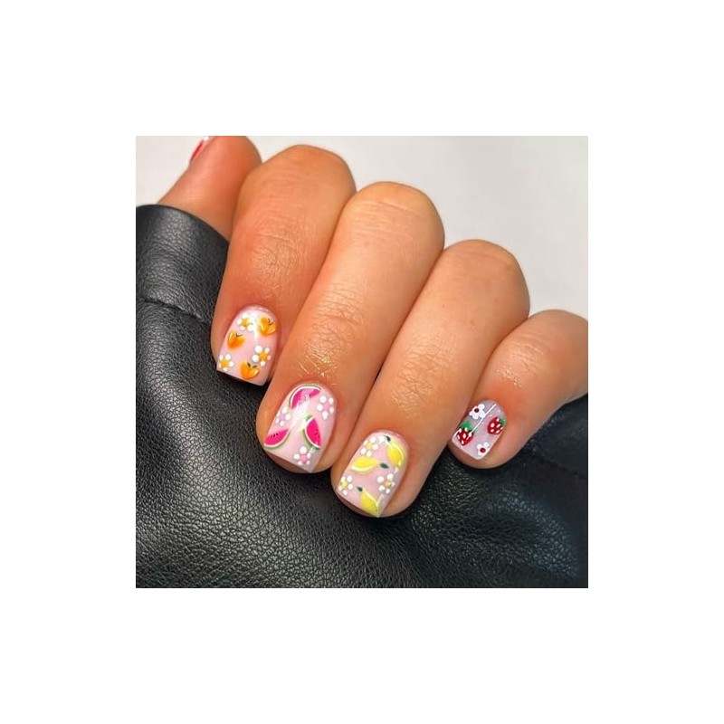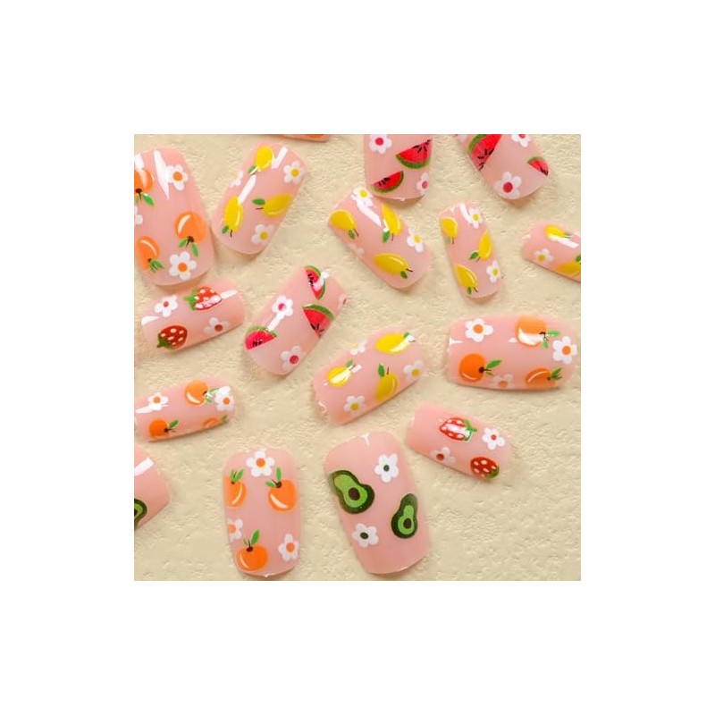 - Eye-catching Design: Beautiful extra short coffin nude nails with watermelon, lemon, strawberry, flowers, avocado patterns that will make you stand out in any occasion.