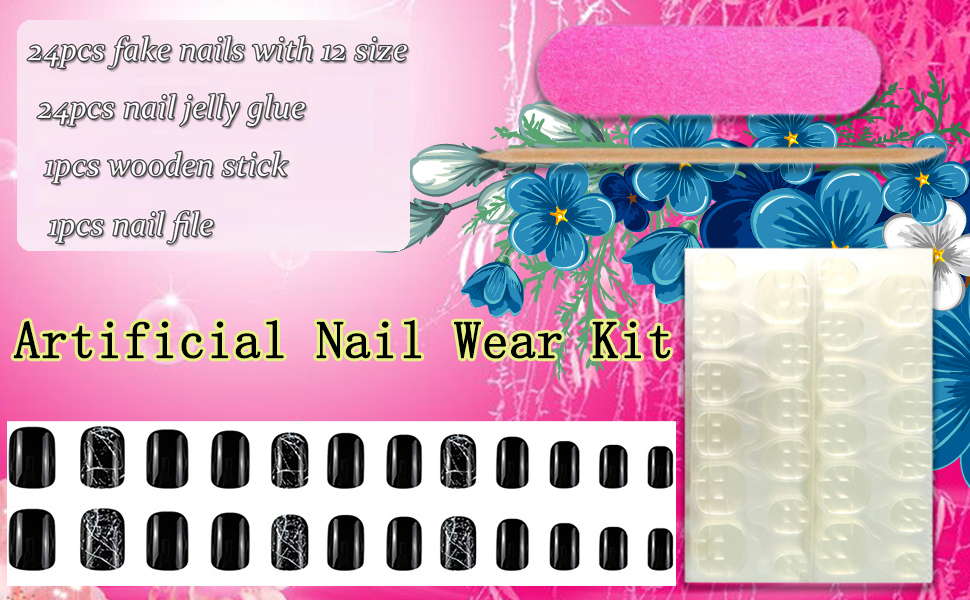 - Great Value: The package contains 24 pieces of short coffin false nails of different sizes, 1 mini nail file, 1 small wooden stick, 1 piece of nail glue sticker, giving you plenty of nails to use for multiple occasions.