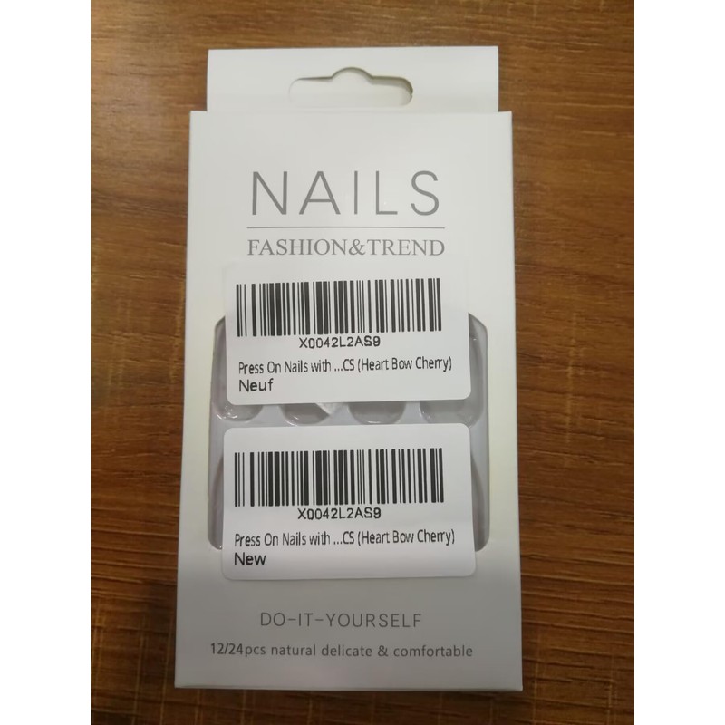 Press On Nails with Nail Glue, Fake Nails for Women Girls, Short Long Almond Square Ballet Shape Stick On Nails on 24PCS (Heart Bow Cherry)