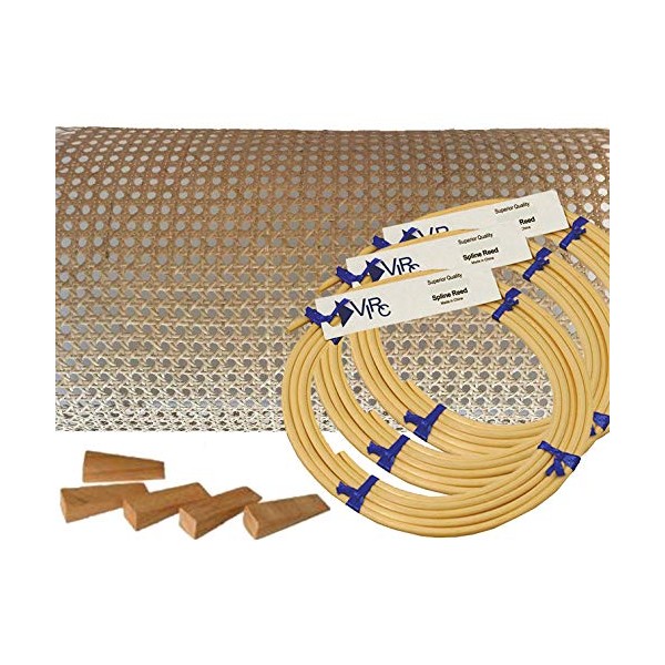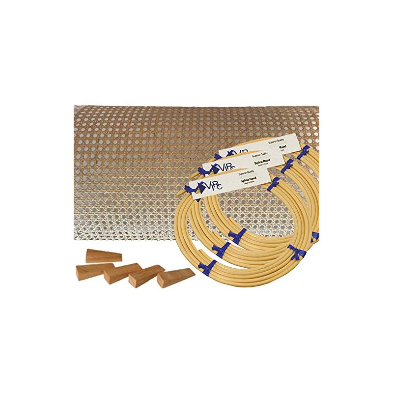 Pressed Cane Webbing Kit 1/2" Fine Open Mesh with splines, Wedges and Instructions