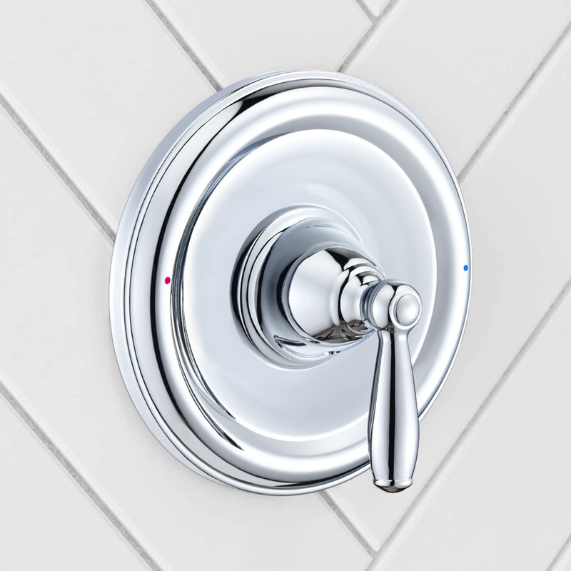 - EASY TO ADJUST - Lever style handle with red/blue temperature indicator on the escutcheon