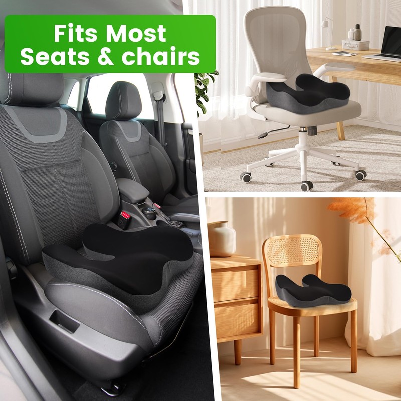 - PROPER CURVED DESIGN: Our seat cushion for lower back pain relief sees the proper curved lines around it to fully fit your butt and thighs, give your lower body a comfortable and sufficient support. Its 3D U-shape float your tailbone in the air to reduce the pressure for the body weight.