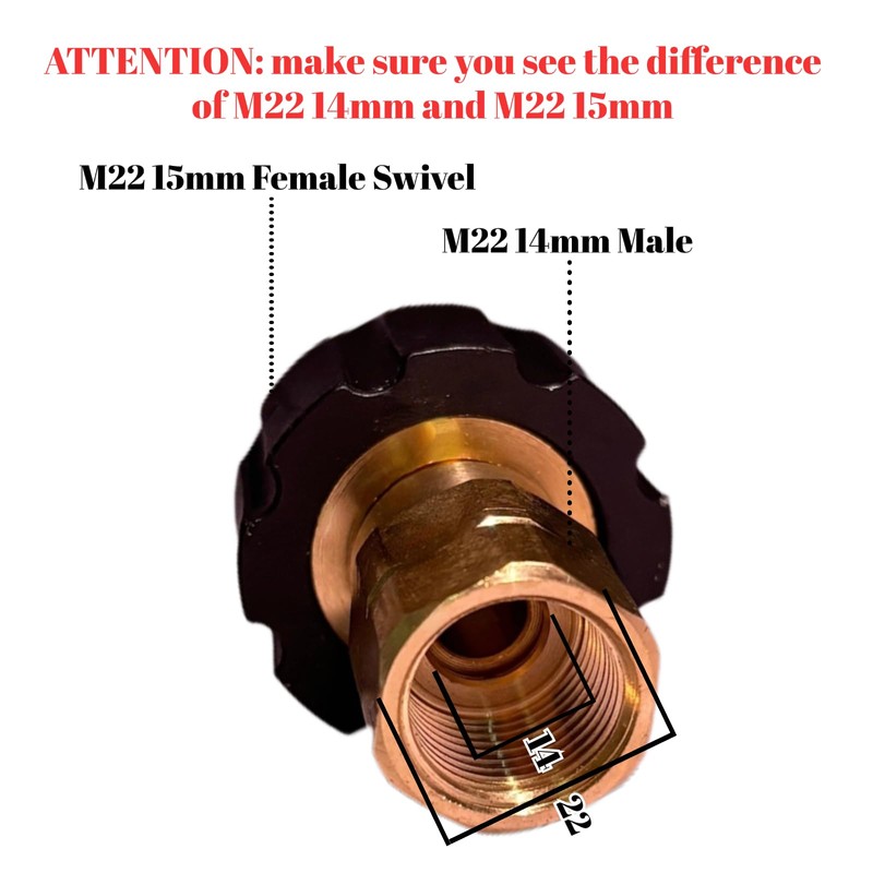 • ATTENTION: CONVERT METRIC M22 15MM FEMALE TO M22 14MM MALE. M22 14mm fitting is compatible with Generac, Simpson, Briggs Stratton, craftsman, karcher, Ryobi pressure washer. M22 15mm fitting is compatible with Sun Joe, Campbell, MI-T-M, AR Blue, Stanley, Cleanforce, Simoniz, Excell power washer.
