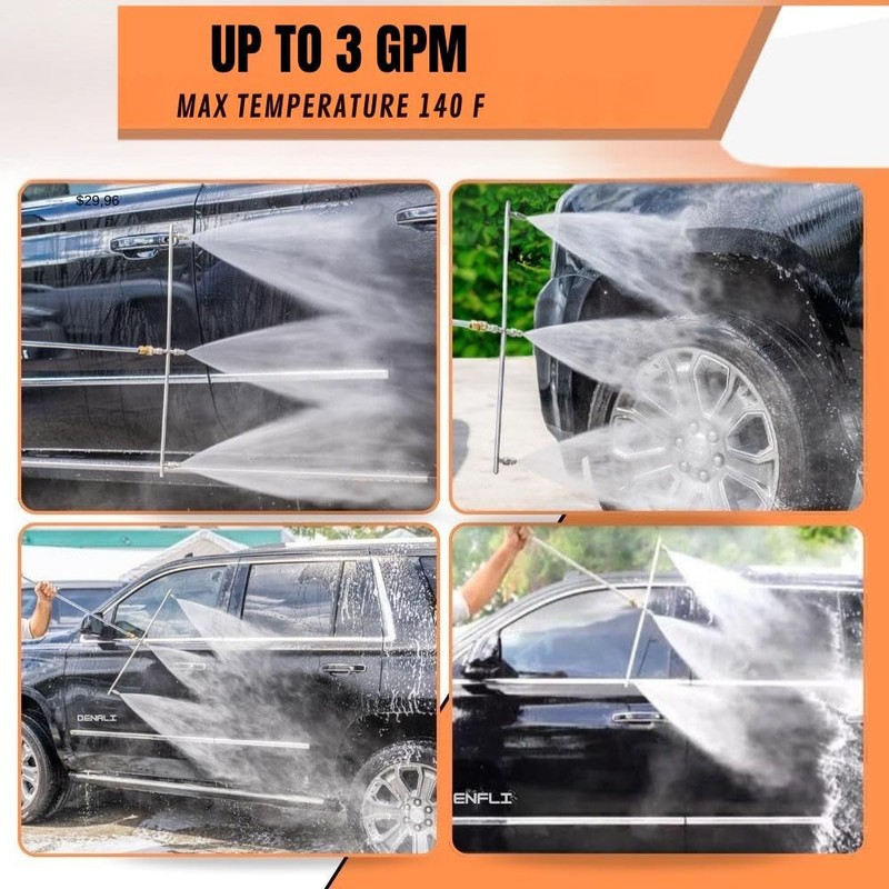 - 💧 STAINLESS STEEL CONSTRUCTION: Our Pressure Washer Lance is Built with high-quality, durable stainless steel, our Triple-Action Pressure Washer Sprayer is designed to withstand even the toughest cleaning jobs and last for years to come. This robust and rust-resistant material ensures long-lasting performance and reliability.