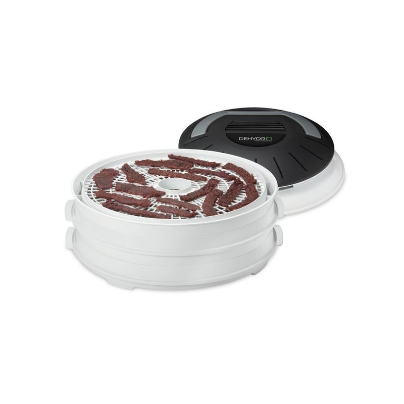 This expandable four-tray system dehydrates fruits, vegetables, and makes homemade jerky from meat, poultry or seafood. Dehydration maintains natural vitamins and minerals-with no additives or preservatives. The Presto Dehydrator is easy to use and easy to store! The drying trays nest when not in use for over a 35% reduction in storage space.