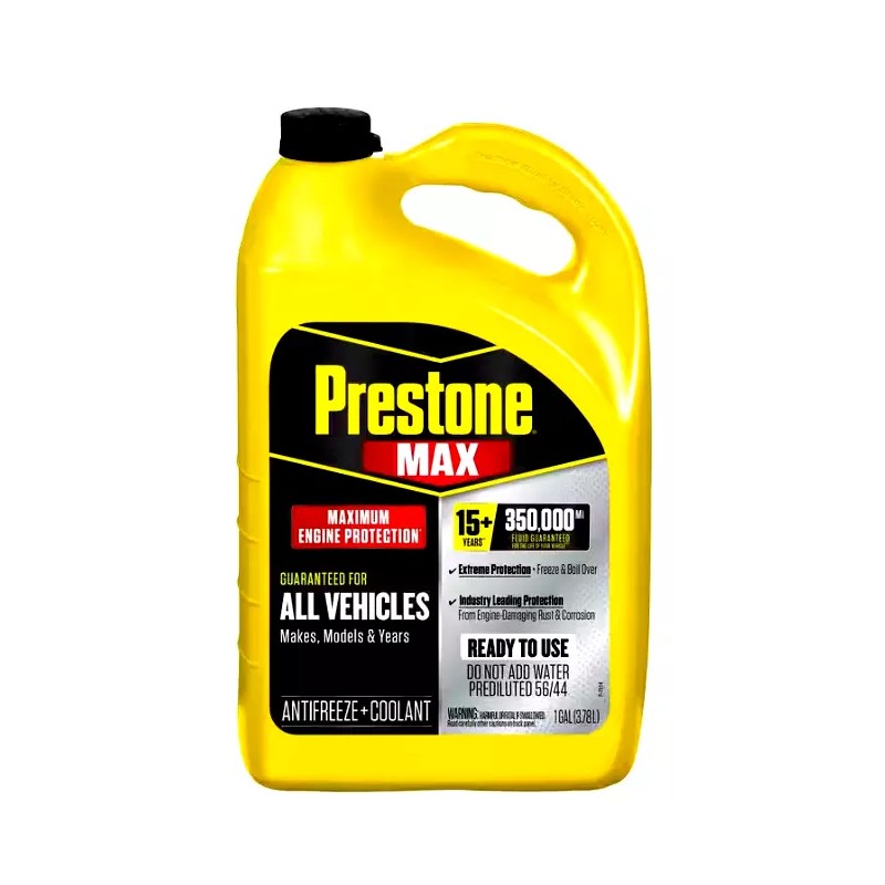 - Prestone Max is guaranteed to protect your vehicle for 15+ years and/or 350,000 miles. It’s the longest fluid life in the industry.