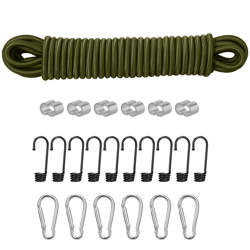 PRETEX Bungee Shock Rope with Hook and Crimping Pliers Set Olive