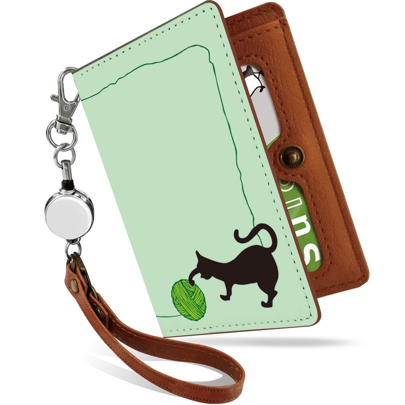 Pretimo Cat Cat Silhouette Cute Bifold Reel Strap Pass Case, Cat Yarn Ball Green