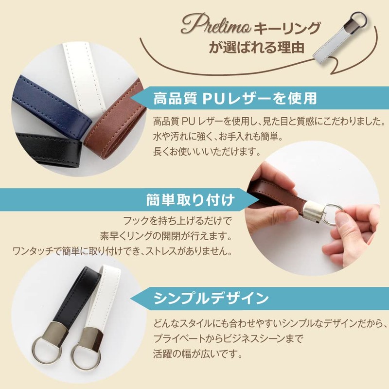 Pretimo Keychain, Key Ring, Compatible with Smart Keys, For Cars, Motorcycles, Bicycles, Lost Prevention, Anti-Theft, Unisex, PU Leather, Black