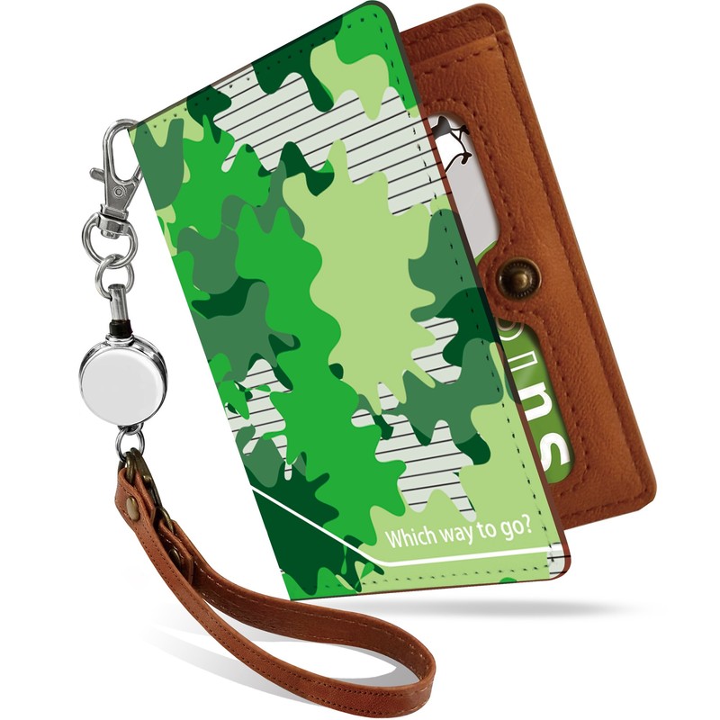 [Pretimo] パスケース 定期入れ リール付き かわいい 迷彩 ポップ 緑 生地 テキスタイル 二つ折り 中がみえない おしゃれ レディース カモフラ 緑 [迷彩 ポップ 緑/ps]