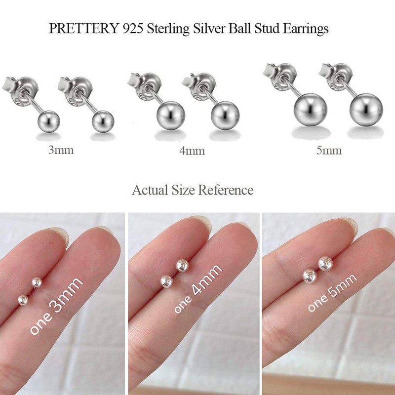 PRETTERY Silver Stud Earrings for Women, 925 Sterling Silver 3 Pair 3mm Round Ball Stud Earrings Set
