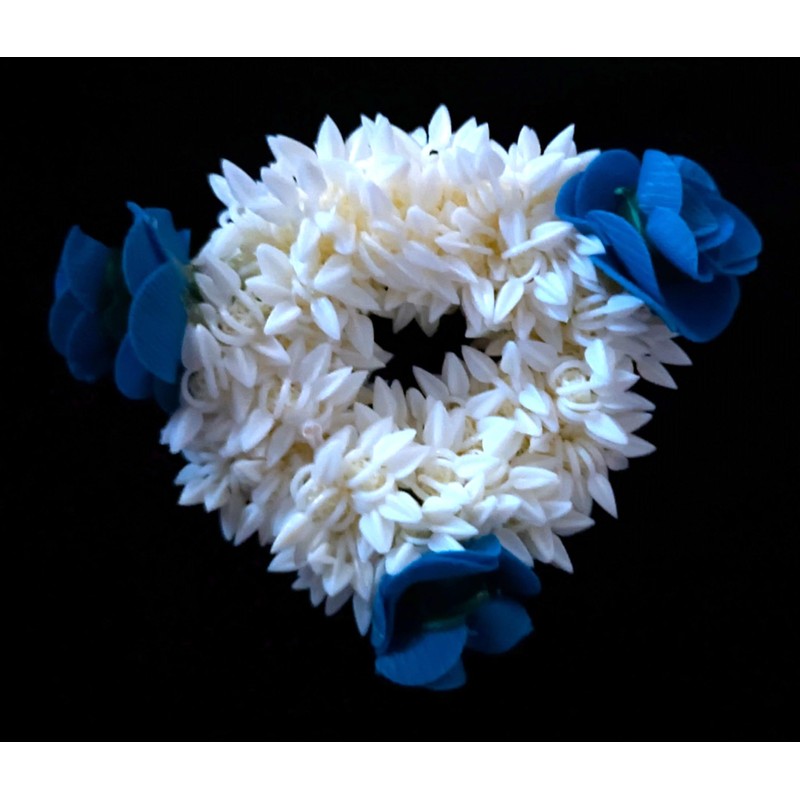 - TRADITIONAL DESIGN: Beautiful white jasmine flower bands with blue accent flowers, perfect for Indian wedding ceremonies and traditional celebrations