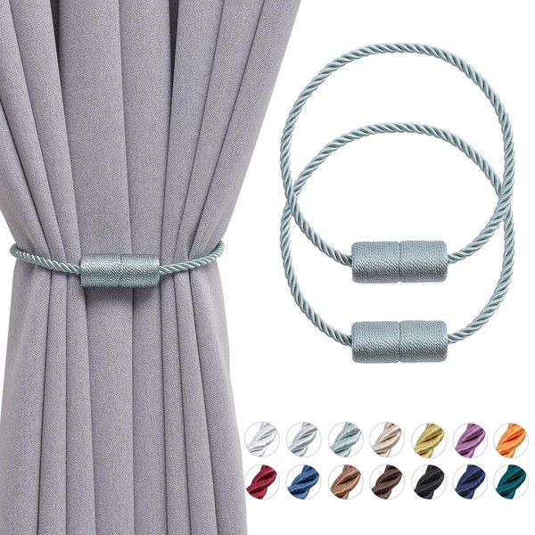 Pretty Jolly Magnetic Curtain Tiebacks Handmade Fabric Rope Curtain Tiebacks Simplicity Decorative Curtain Drape Tie Back for Home Window Drapery, Blue Grey, Pack of 2