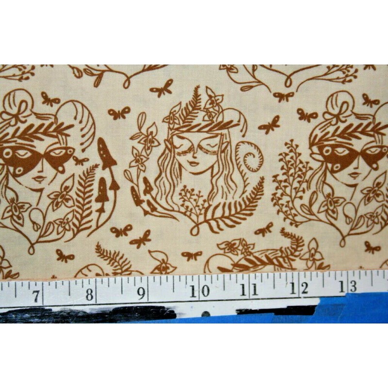 PRETTY MASKED FACES IN BROWN FROM RAE RITCHIE - 100 % COTTON FABRIC