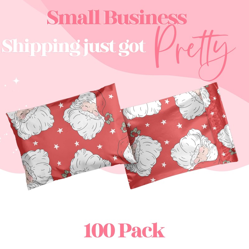 Pretty Package Store 10x13 Designer Christmas Holiday Poly Mailer 100 Pack Heavy Duty Waterproof Self Seal Shipping Bags Large Mailing Envelopes Bulk Tear Resistant Cute Packaging Red Santa