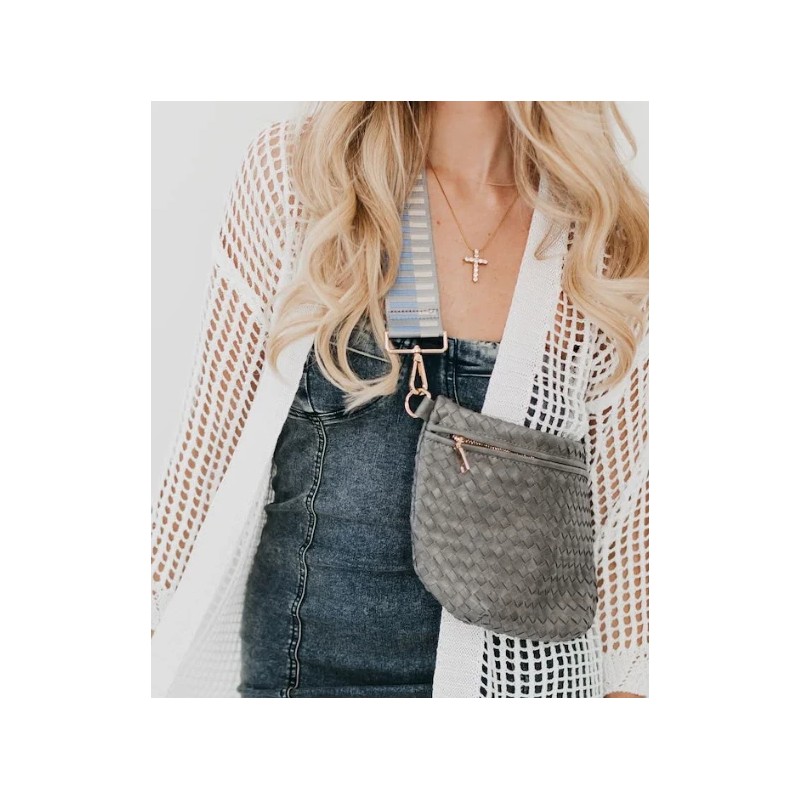 Pretty Simple Westlyn Woven Bum Bag Crossbody Gray Detachable Belt Strap NEW