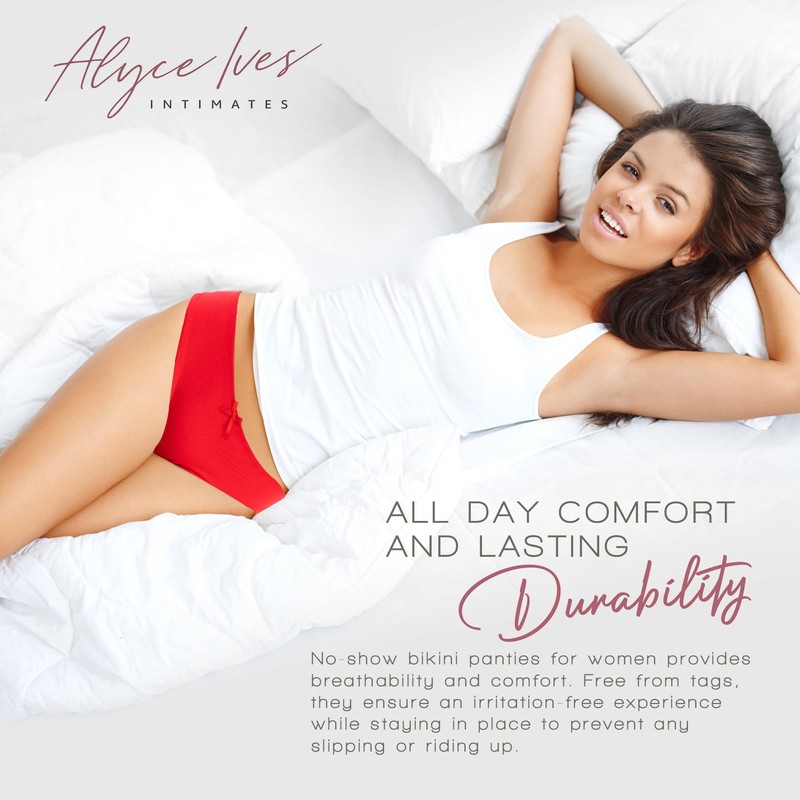 - NO-SHOW UNDIES FOR ALL DAY COMFORT: This pack of no-show bikini panties for women provides breathability and comfort. Free from tags, they ensure an irritation-free experience while staying in place to prevent any slipping or riding up, unlike other seamless panties on the market. Customers love them so much they keep coming back for more. With a "will buy again" and "rebought" endorsement from satisfied buyers, the comfort and quality speak for themselves.