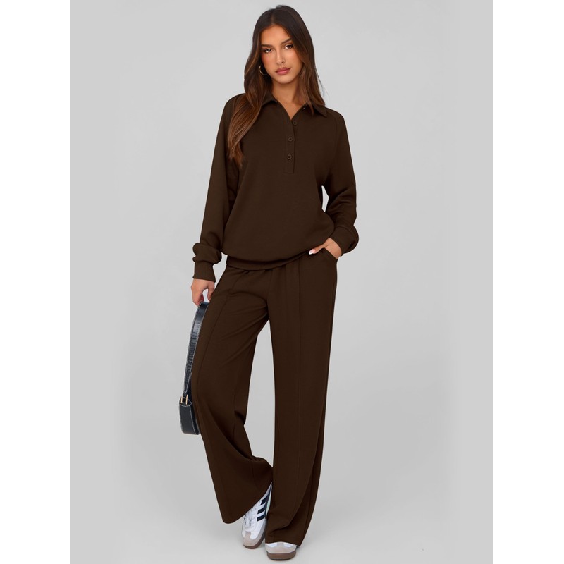- Features: Womens sweatsuits 2 piece set includes a quarter button sweatshirt for women and wide leg sweatpants women to keep you comfortable and stylish. jogger sets for women 2 piece,winter clothes for women,fall outfits for women 2025,sweat set for women,two piece outfits for women