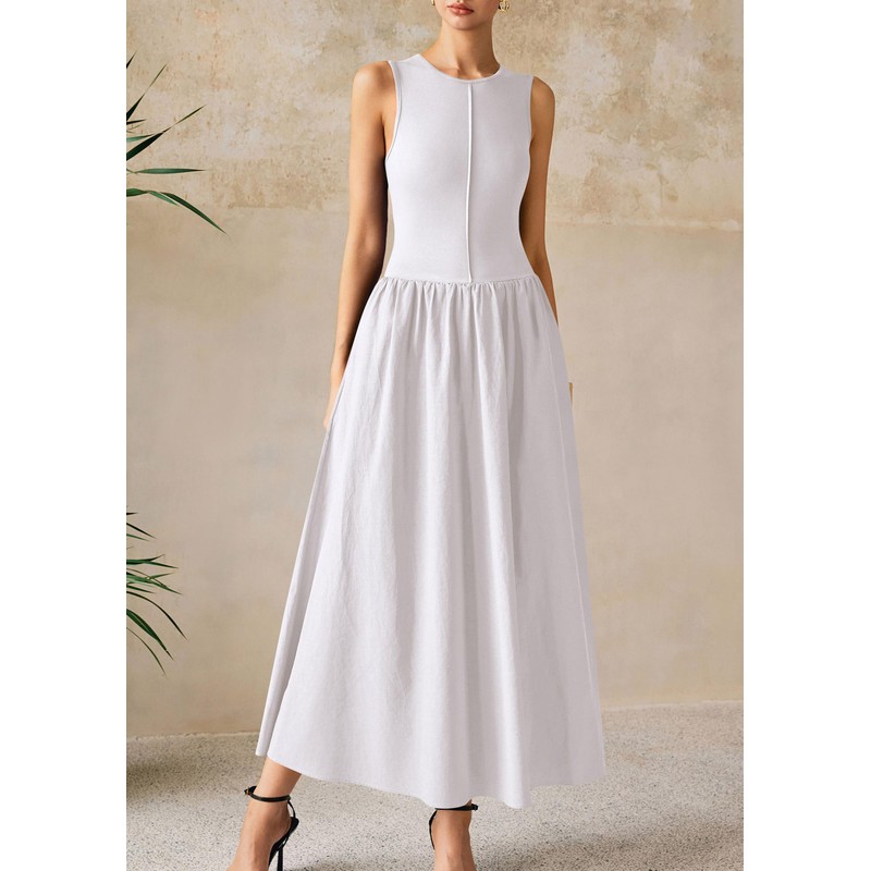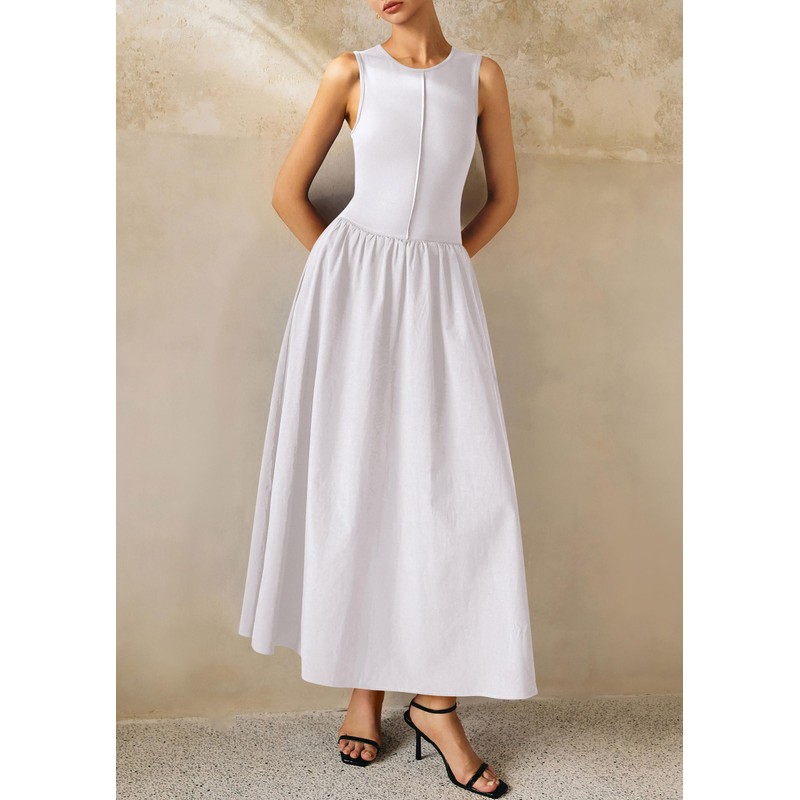 Fashion Style:Round Neck Fitted Tank/Sleeveless/Solid Color/A-Line Flowy Hem Skirt/Patchwork