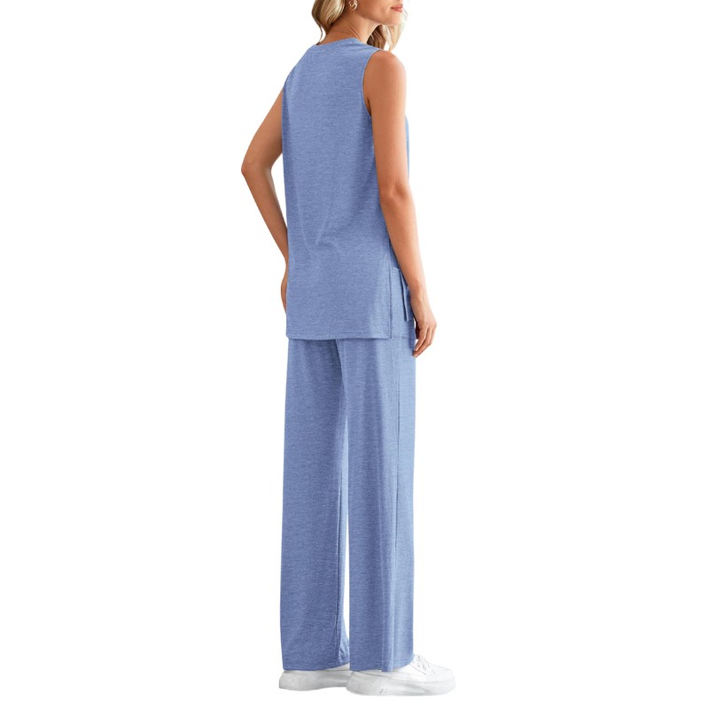 - EYE-CATCHING DESIGNS: Tank Top and Pants Set for Women; 2 Piece Outfits; Sleeveless Tank Top; High Waisted Pants with Pockets; Wide Leg Flowy Pants; Split Hem Tops; High Low Tanks; Womens Pajama Sets; Comfy Loungewear for Women