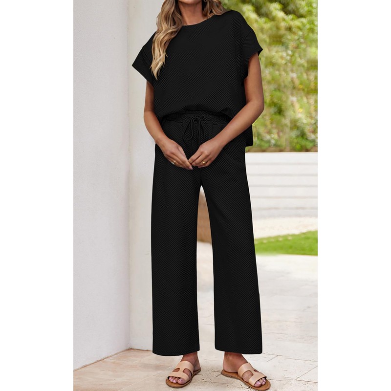 - Design: The Top Is a Short-Sleeved Pullover With a Crew Neck, Trousers Are Elastic Waist Wide Leg Long Pants With And Pockets. Pockets Can Easily Hold Your Phone, Keys, Wallet And Other Small Items, So That You Free Hands, Easy To Go Out. The Women Lounge Sets Can Be Worn Separately With Different Casual Tops Or Other Cargo Pants And Yoga Pants