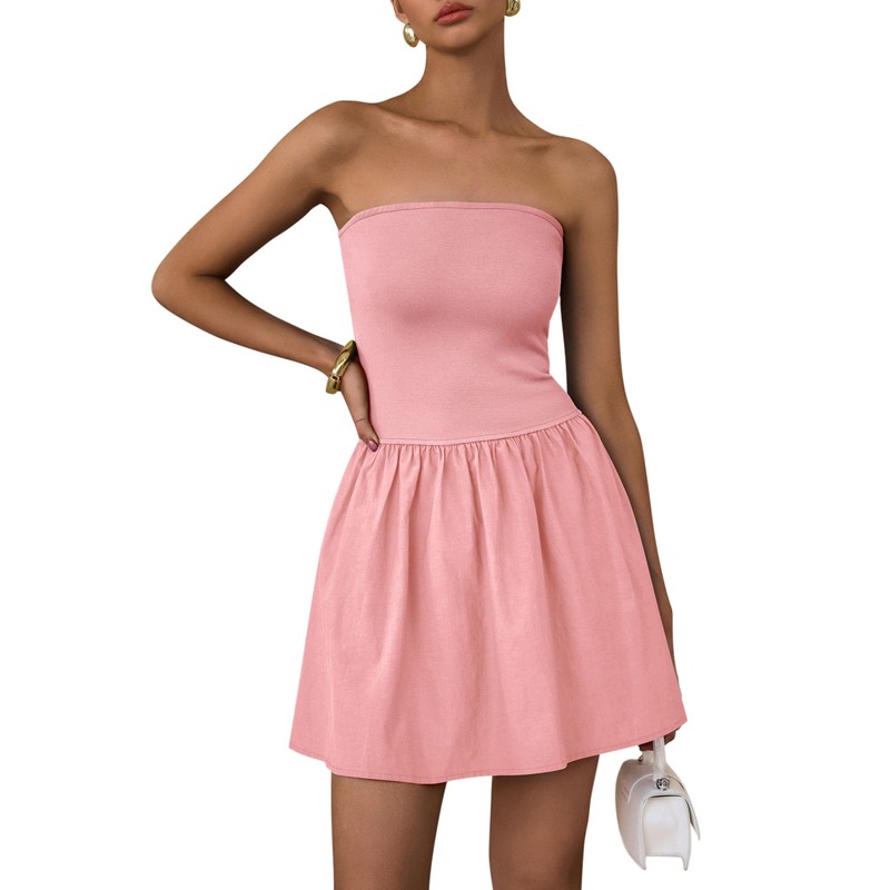 - Chic Designs: Strapless Dress for Women; Tube Top Dress for Women Sexy; Mini Summer Dress; Short Homecoming Dresses; Flowy Dress; A Line Swing Dresses; Women Patchwork Dress; Knit Dress; Ruffle Dresses; Y2K Clothes; Elastic Waist Dress