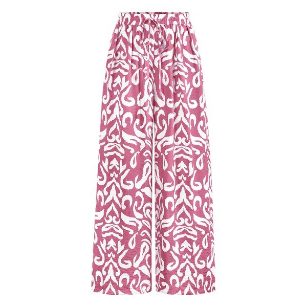 PRETTYGARDEN Womens Pants Elastic Waist Floral Lightweight Palazzo Pants for Women Casual Lounge Wide Leg Pants Woman (Pink, Large)