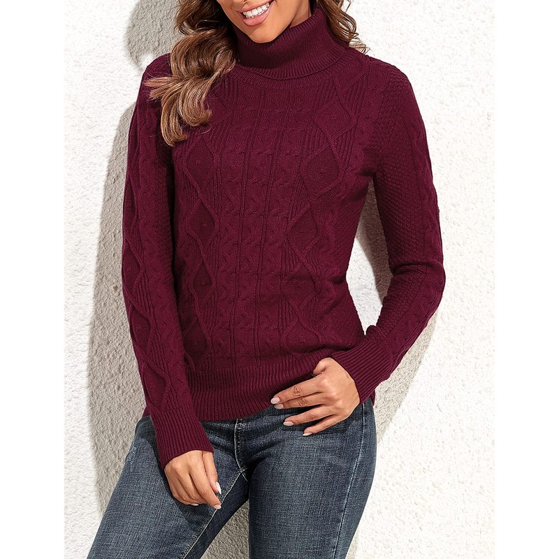 PrettyGuide Women's Turtleneck Sweater Long Sleeve Cable Knit Sweater Pullover Tops XL Burgundy