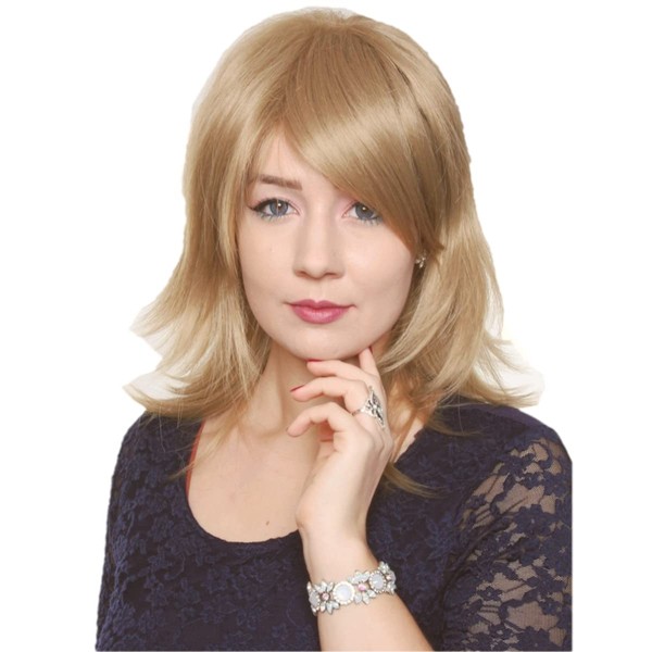 - Approx. 40 cm long, smooth wig in blonde/Dark Blonde, Medium Length Wig