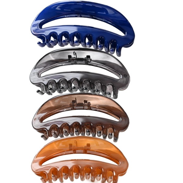 Prettyou 3.9 Inches Plastic Flower Claws Crystal Banana Hair Clip for Women Girls, Pack of 4 (blue,brown,amber,grey)