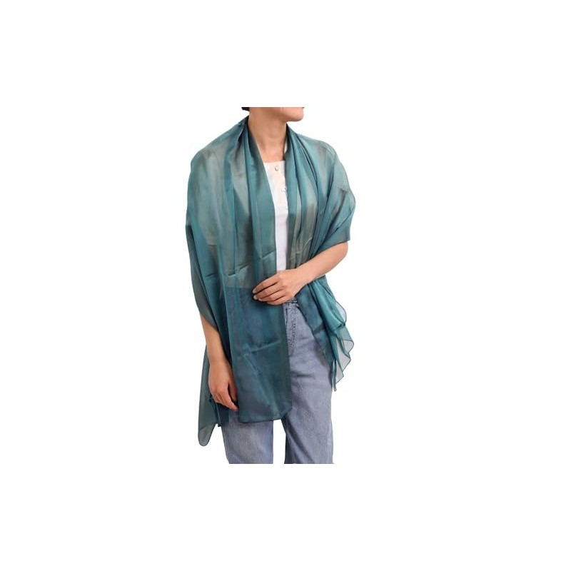 Prettystern Women's Plain Colour Silk Taffeta 100% Chiffon Silk Festive Stole Shawl Scarf for Evening Dresses, 23. Peacock Blue