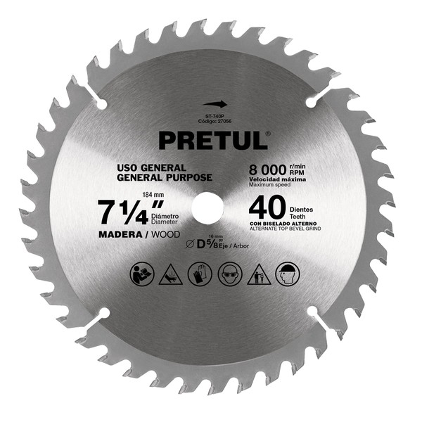 Pretul ST-740P, Disco sierra 7-1/4" para madera 40 dientes centro 5/8"