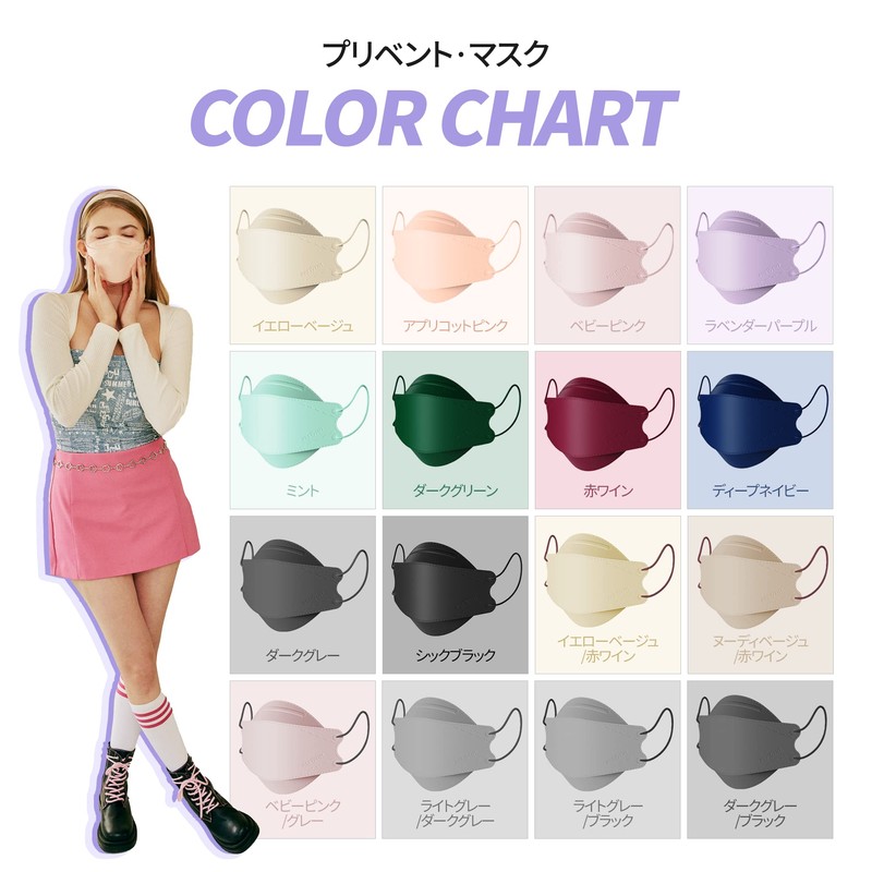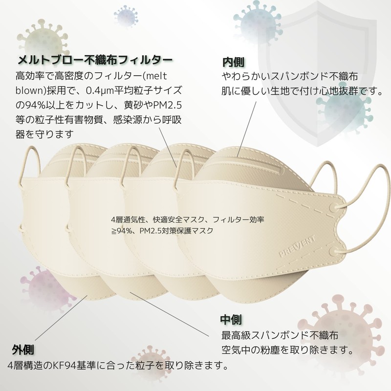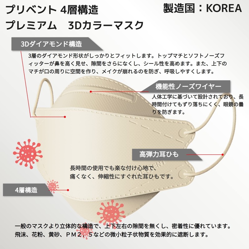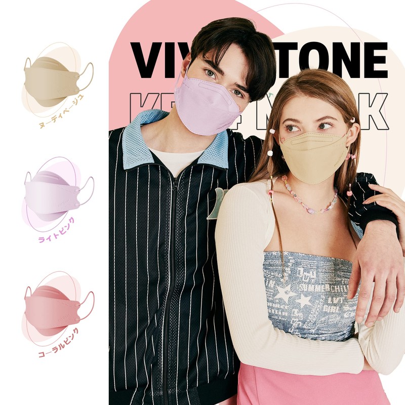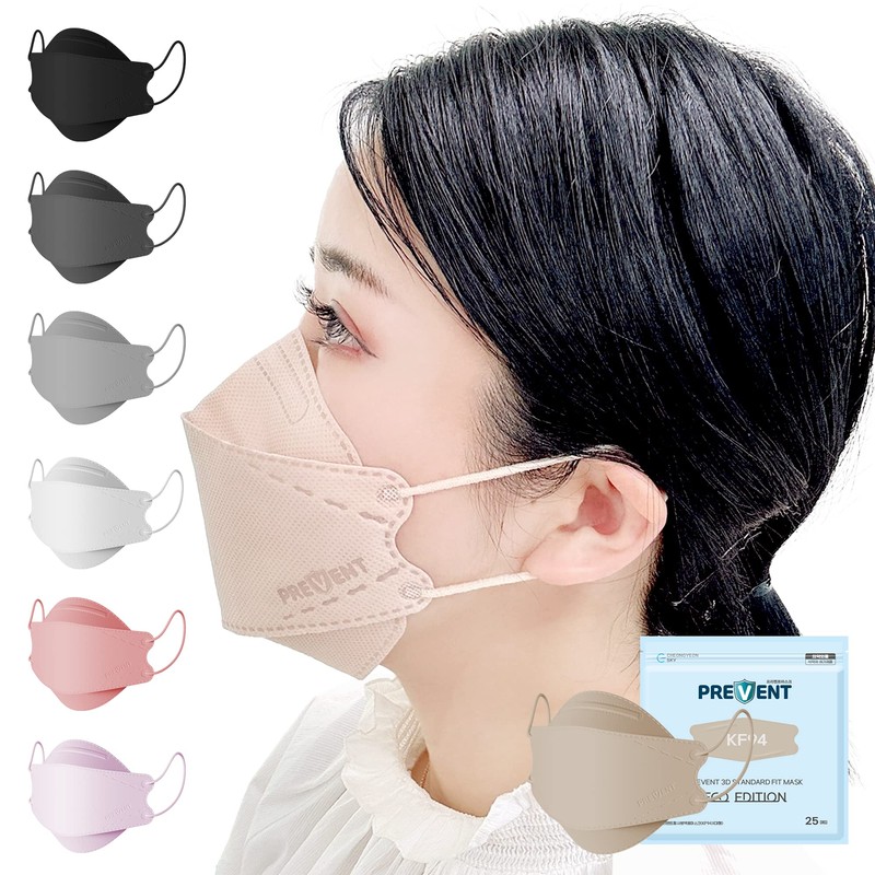 [prevent] KF94 韓国マスク【 ヌーディベージュ,50枚入り】 カラーマスク 不織布,3D立体バイカラーマスク,くちばし型小顔マスク,肌にやさしい 息がしやすい 口紅が付きにくい 耳が痛くならない,血色マスク,ピンク、ベージュ,4層構造