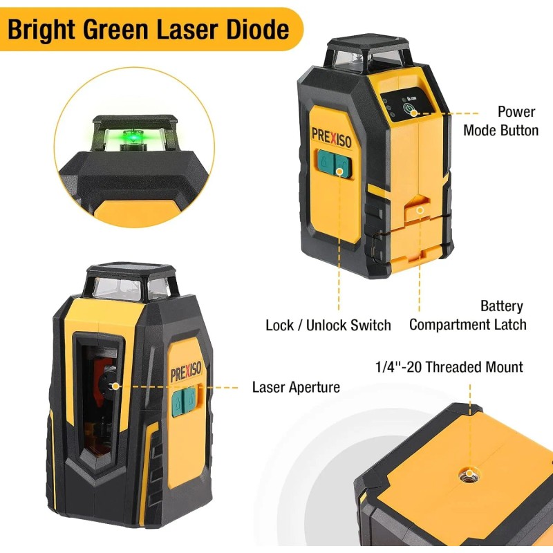 Multipurpose & Widely Application - PREXISO line laser can cover the room surrounding floors, walls and ceilings. The horizontal and vertical lines intersect at an angle of 90° to help you quickly visualize and complete the square layout; Applicable for floor and wall tiling, chandelier, spotlight install, hanging wall draws, air condition install, door & window calibration, building structure measurement; Class II laser product, maximum laser output < 1mW