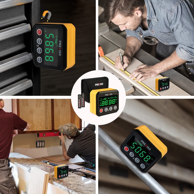 PREXISO Magnetic Digital Angle Gauge Protractor Inclinometer Bevel Box with Data Hold,V-Groove Magnetic Base,Large LCD Display Backlight for Woodworking,Building,Drilling Machinery,Masonry,Automobile
