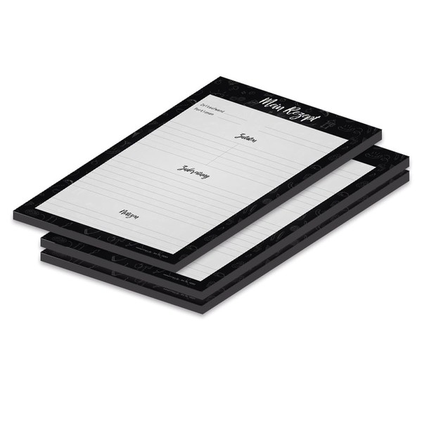 Unimaginative was yesterday. Makes baking and cooking fun. In our range you will find different recipe block designs that meet every taste. The clearly designed recipe blocks help you to ensure that your favourite recipe is no longer forgotten. The structured division not only simplifies preparation, but is also the ace in the sleeve when you are spontaneous visiting or you want to prepare something special for yourself and the family. Combine the recipe pad with our shopping lists as well as meal/weekly planners.