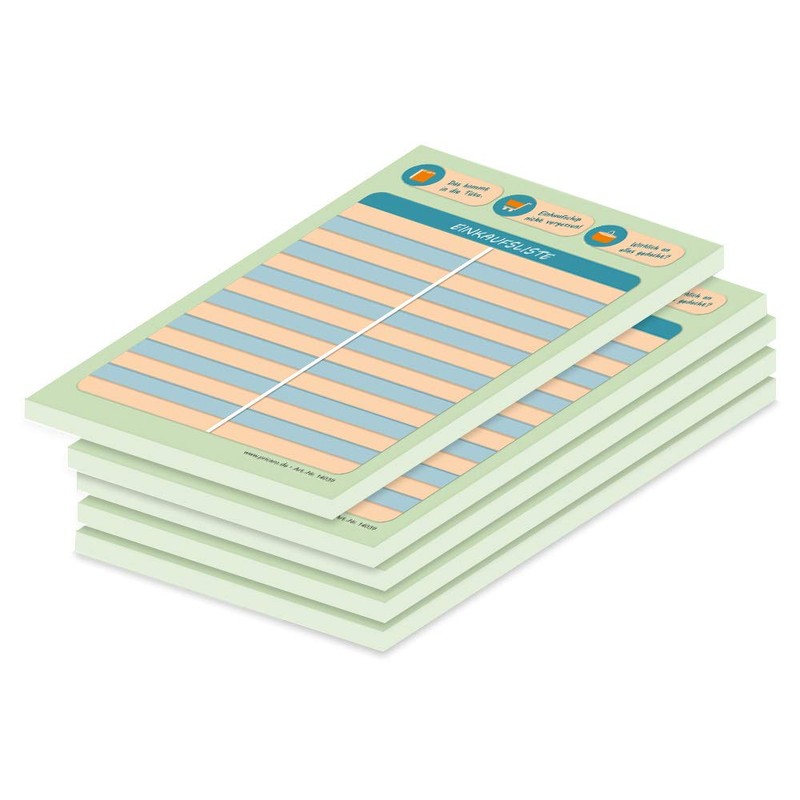So that nothing is forgotten - the practical shopping list in a modern design. Divided into two rows, the tear-off pad offers plenty of space for all the products you need. Therefore, the prefabricated shopping list is also ideal for large purchases.