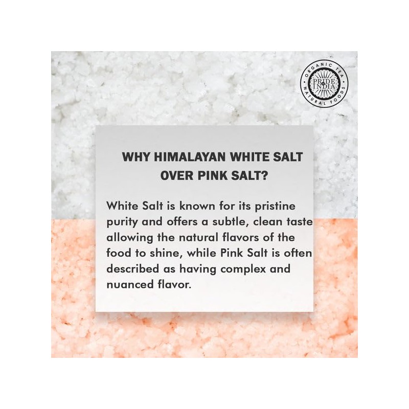 - Health-Conscious Choice: Make a health-conscious choice with our Himalayan White Salt. Sourced from the heart of the Himalayas, this natural salt is unprocessed and free from additives. With its delicate flavor and trace minerals, it's a mindful option for those seeking to enhance their dishes without compromising on their well-being. Elevate your culinary experience with the purity and authenticity of Himalayan White Salt.