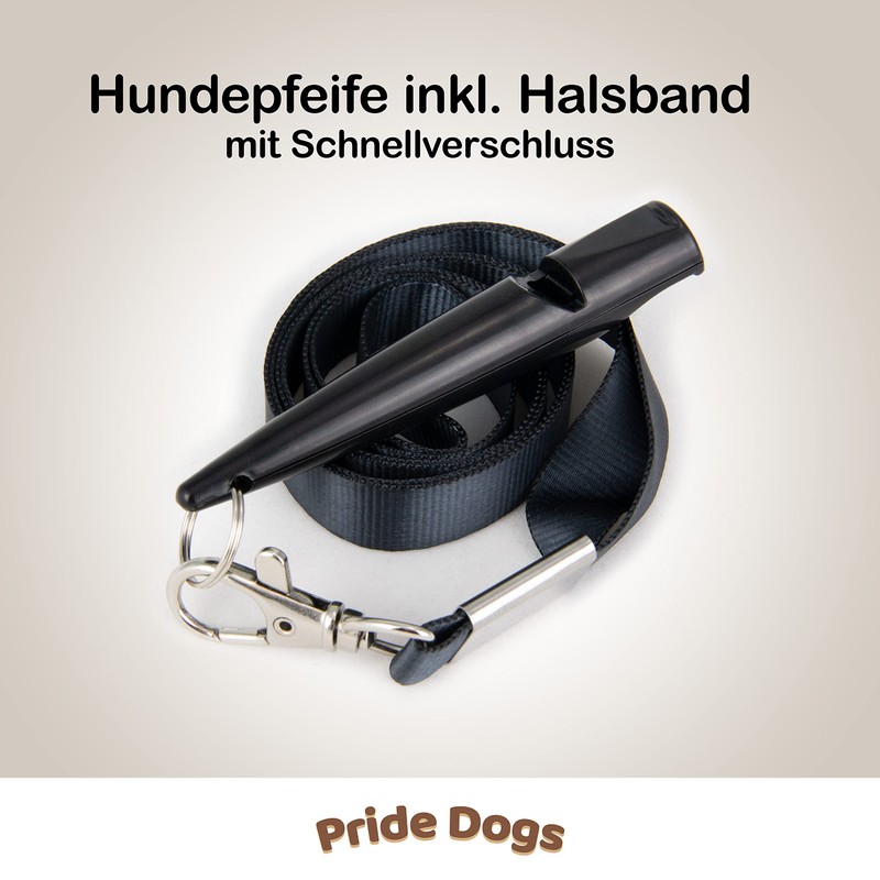 PrideDogs Dog Whistle with Whistle Strap - Perfect for Dog Training - High Frequency - Black