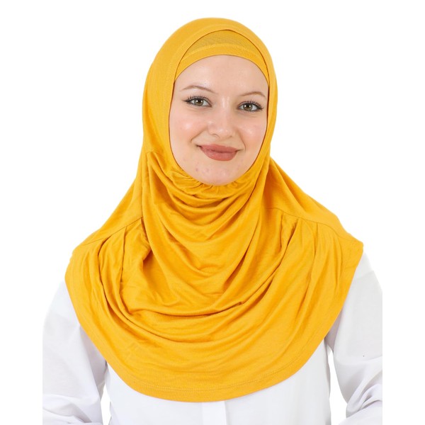 Prien Chic Ready To Wear Hijab For Women, Muslim Long Turban Undercap Set, Instant Scarf, Prayer Clothes For Girls, Abaya (Deep Yellow)