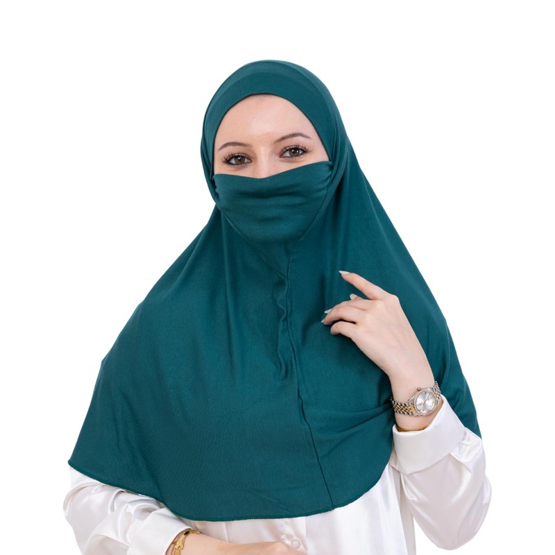 Prien Elegant Headscarf for Women, Muslim Hijab with Niqab, Islamic Scarf Women, Headscarves for Prayer Clothing, Ramadan, Abaya, emerald green