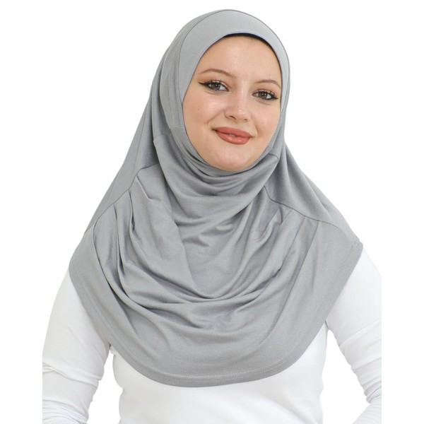 Prien Plain Ready To Wear Hijab for Women, Muslim Instant Turbans, Soft Jersey Scarf, Islamic Clothes, Long Hijabs, Abaya (Grey)