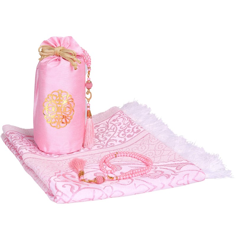 Prien Prayer Rug with Tasbih Bag for Pray, Muslim Gifts Bayram, Mat Salah, Sajadah for Women & Men, Islamic Gift Set for Islam Ramadan, Prayer, Praying, Eid, Quran (Pink)