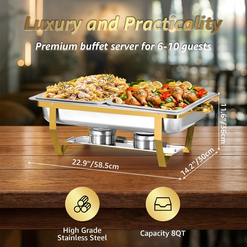 - Various Scenarios: Our chafers and buffet warmers sets don't need to use electricity to work. So both indoor and outdoor are compatible. They can be used in your wedding, parties, banquets and other scenarios