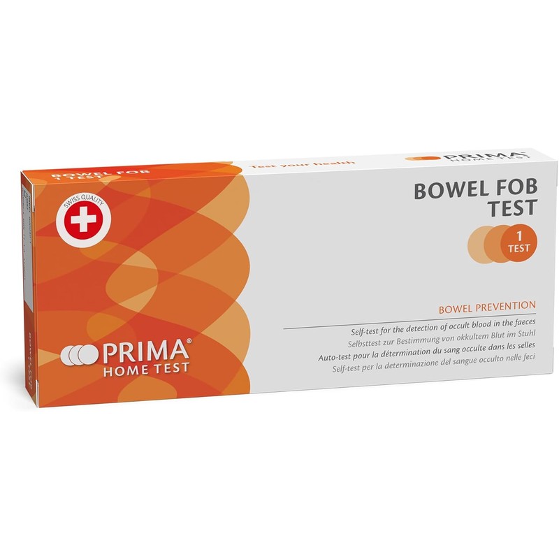 PRIMA Home Test - colon FOB test is a highly specific, immunological test that does not require diet measures. Contents: 1 x user manual; 1 x chair sample catchers (paper strips); 1 x tube with 2 ml extraction solution Bowel FOB test in plastic protective bag; 1 x aluminium protective bag contains: 1 x Bowel FOB test cassette and 1 x desiccant bag.