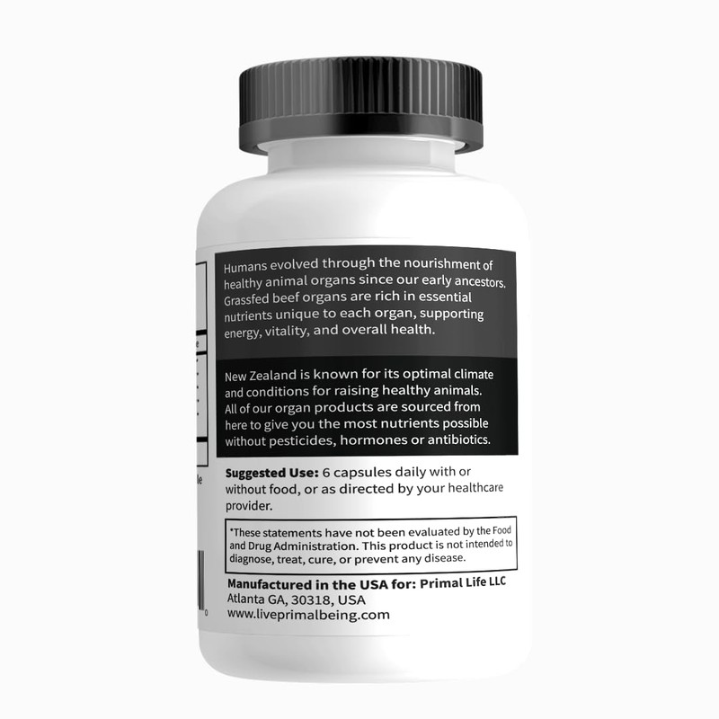 Primal Being Grassfed Beef Organ Complex - Liver, Heart, Pancreas, Spleen, & Kidney- Supports Overall Health & Performance - 180 Capsules, 3000mg per Serving