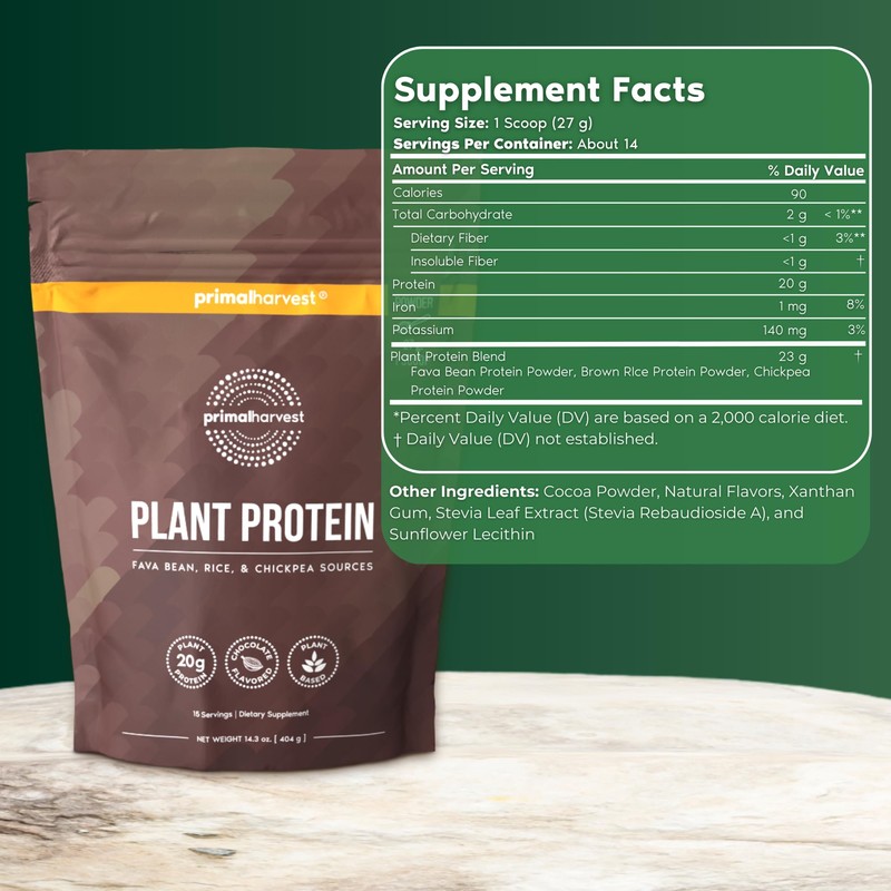 - Plant-Based Protein: 20g of protein per serving, formulated with fava beans, chickpeas and rice to help support muscle recovery and a healthy lifestyle. 15 Scoops
